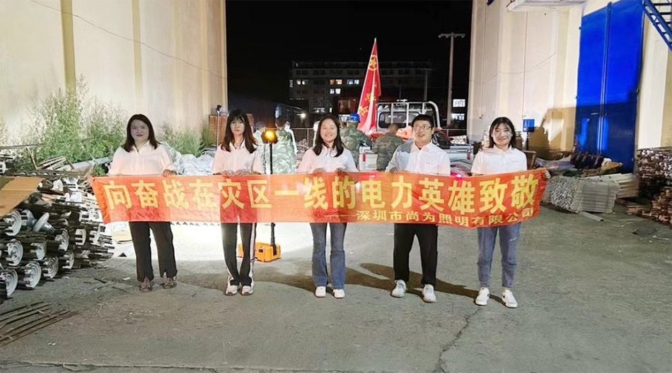 7月底开始,京津冀地区持续受到暴雨天气侵袭,暴雨的预警和新闻一条接着一条。“平安大于一切”,尚为照明河北办事处第一时间成立9人、8车组成的应急小组,向集团公司反映当地汛情,申请启动重大突发事件应急预案,集团公司统一协调调拨大型照明灯具50套,中型照明灯具400套,单兵作战头灯800套,手电1000套,物资历时26小时抵达河北仓库,无偿提供一线救援队伍使用。