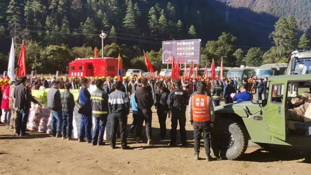 2021年10月26日13:55,西藏林芝市察隅县发生森林火灾,林芝服务部经理陈琛峻接到通知,第一时间集结应急救援队伍,紧急调拨物资奔赴救援现场。